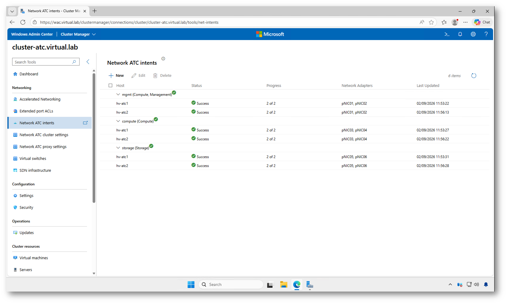 Figura 4: Intent di Network ATC configurate e applicate correttamente sui nodi del cluster