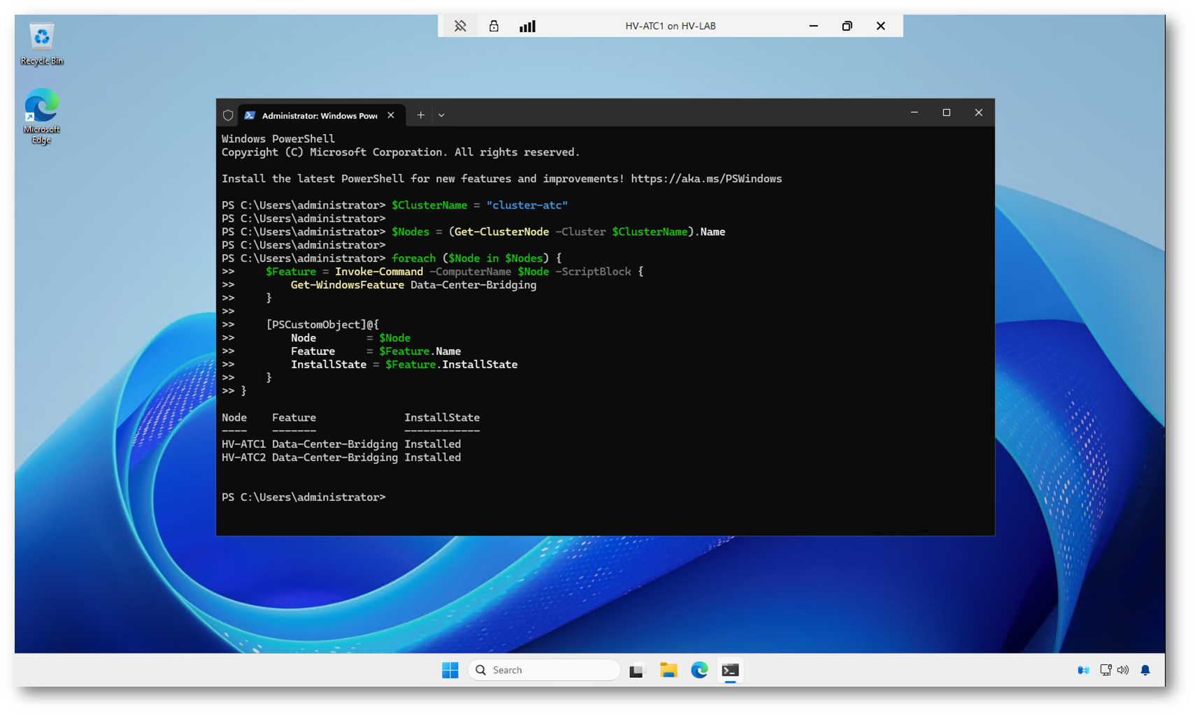 Potete eseguire la verifica in modo centralizzato tramite PowerShell, interrogando direttamente tutti i nodi del cluster: