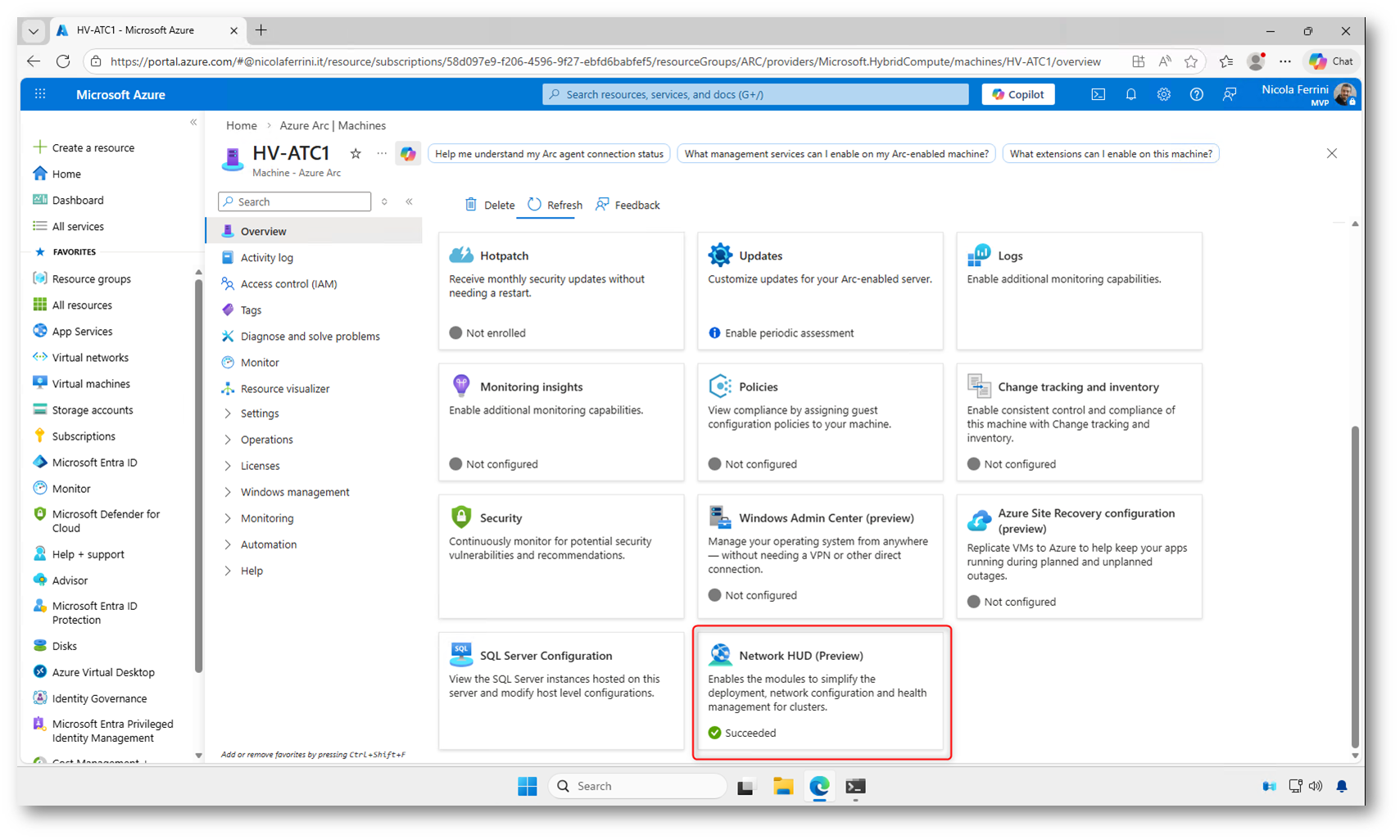 Come indicato nella documentazione ufficiale, al momento la funzionalità è disponibile solo in un insieme limitato di region. Tra queste rientrano, ad esempio, West Europe e North Europe, oltre ad alcune region negli Stati Uniti e nell’area Asia-Pacifico. Prima di procedere, è quindi necessario verificare che le macchine Azure Arc del cluster risultino registrate in una region supportata. Se la region non è tra quelle abilitate, la tile di Network HUD non comparirà e l’estensione non potrà essere installata. Verificate alla pagina Install Network HUD for Windows Server (preview) | Microsoft Learn l’elenco delle region supportate.