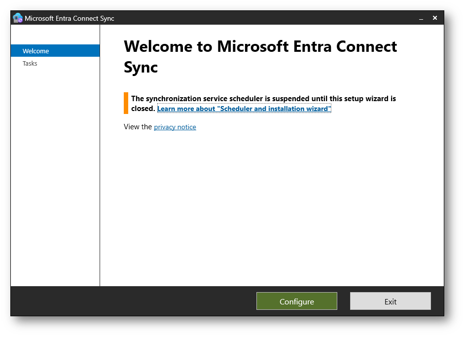 Avvio del wizard di Microsoft Entra Connect Sync