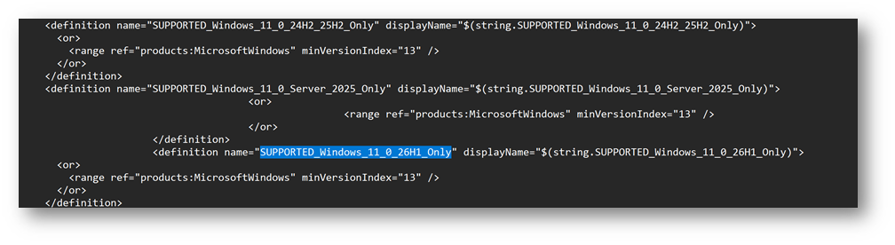 Figura 2 – Riferimenti alla versione 26H1 recentemente individuati nei file di aggiornamento (Immagine: Windows Central)