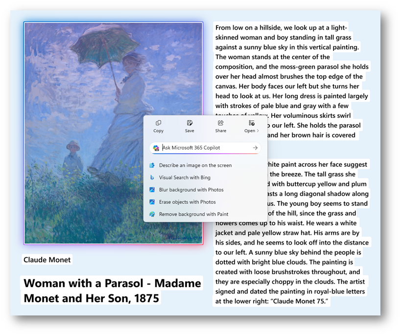 Sarà possibile inviare contenuti ad Ask Microsoft 365 Copilot e porre domande su ciò che viene visualizzato a schermo, senza dover cambiare contesto.