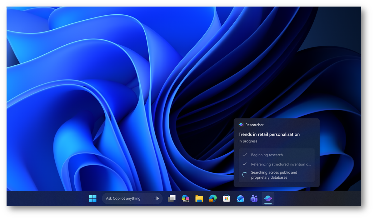 Quando si utilizzano agenti IA che richiedono più tempo per completare le proprie attività, come Researcher, gli agenti nella barra delle applicazioni mostreranno lo stato e la logica del “ragionamento” passo-passo, rendendo semplice verificare i progressi dell’agente e visualizzare l’avanzamento.