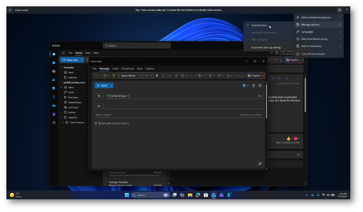 Windows mira a garantire, alle organizzazioni, la possibilità di offrire esperienze utente flessibili e personalizzate. Con il supporto per l’interazione multimodale e una più profonda integrazione delle funzionalità di Microsoft 365 Copilot in Windows 11, l’IA diventa più di una semplice parte naturale dei flussi di lavoro quotidiani: può rendere ogni interazione intuitiva e intelligente. Di seguito vari esempi dei nuovi modelli di interazione in Windows.