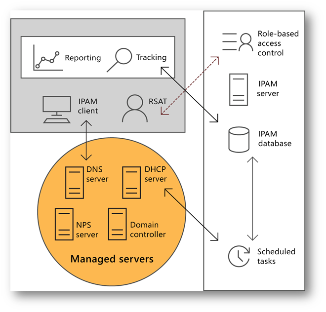 • IPAM consente di gestire centralmente i server DHCP, DNS, NPS (Network Policy Server) e i Domain Controller (DC).