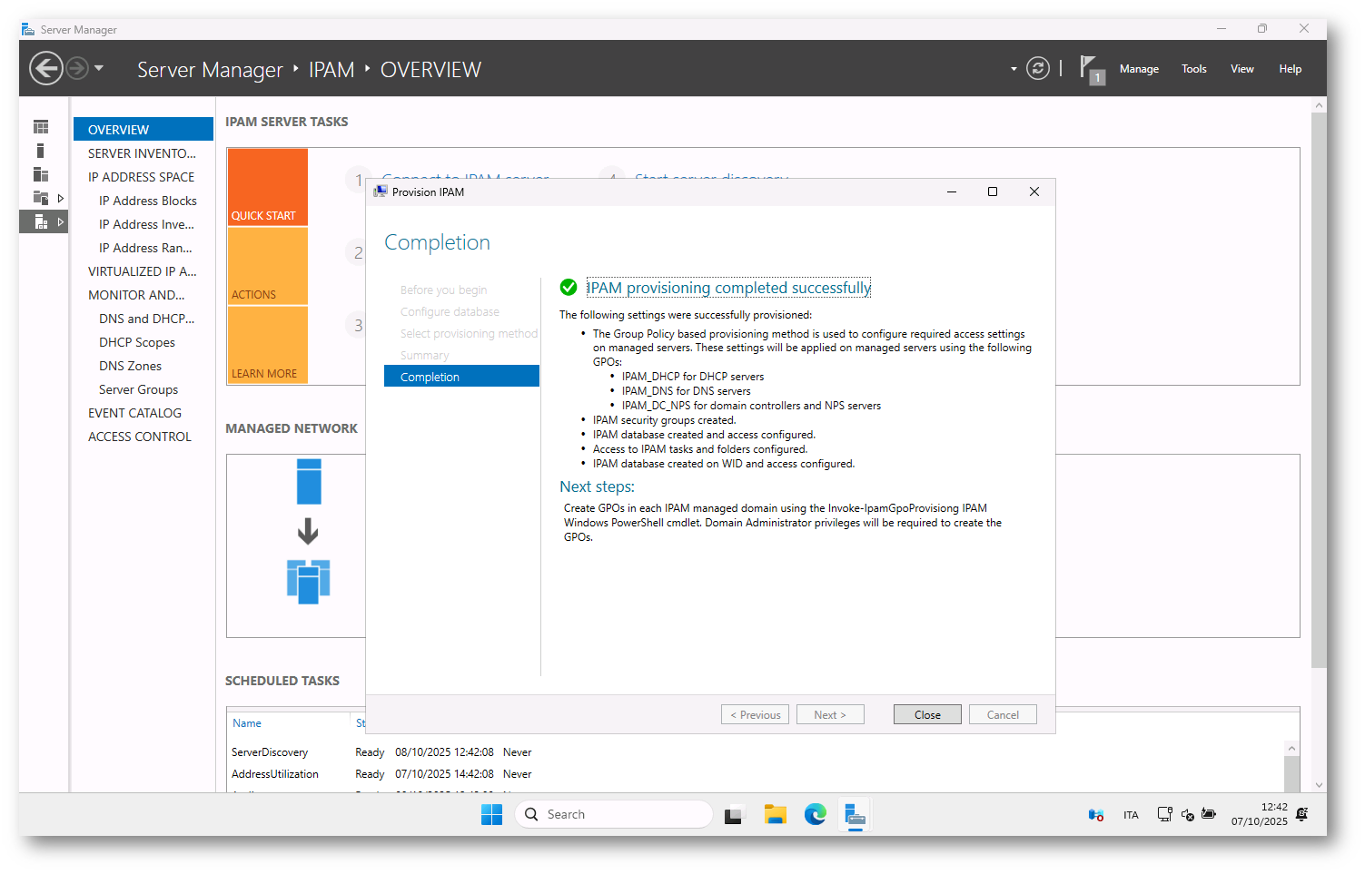 Figura 10: Provisioning dell’IPAM Server completato con successo