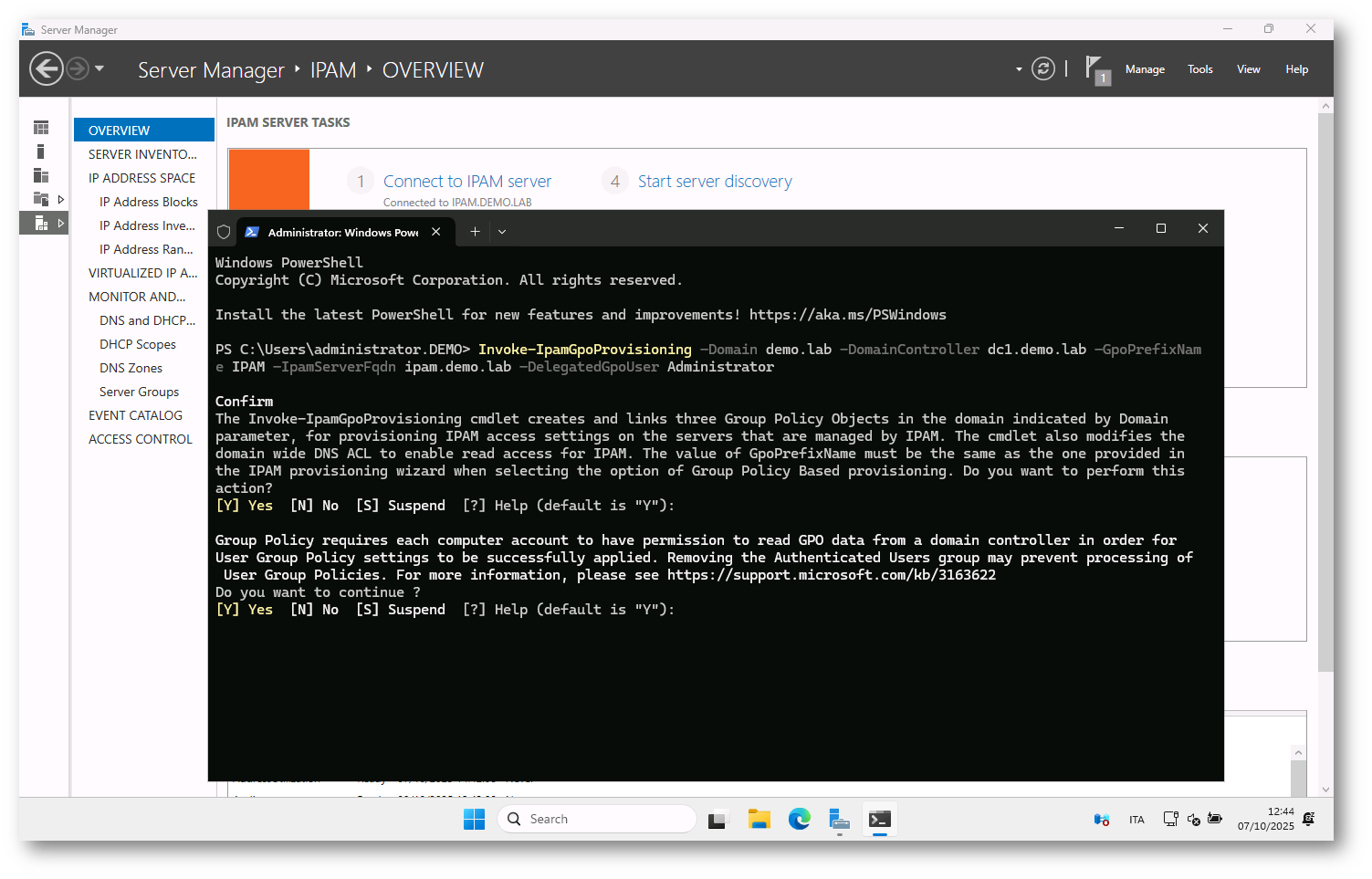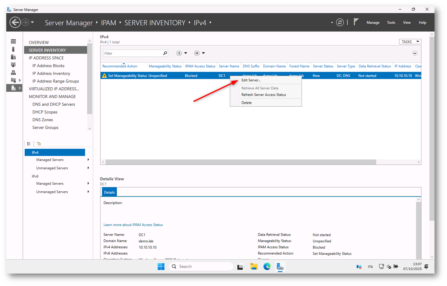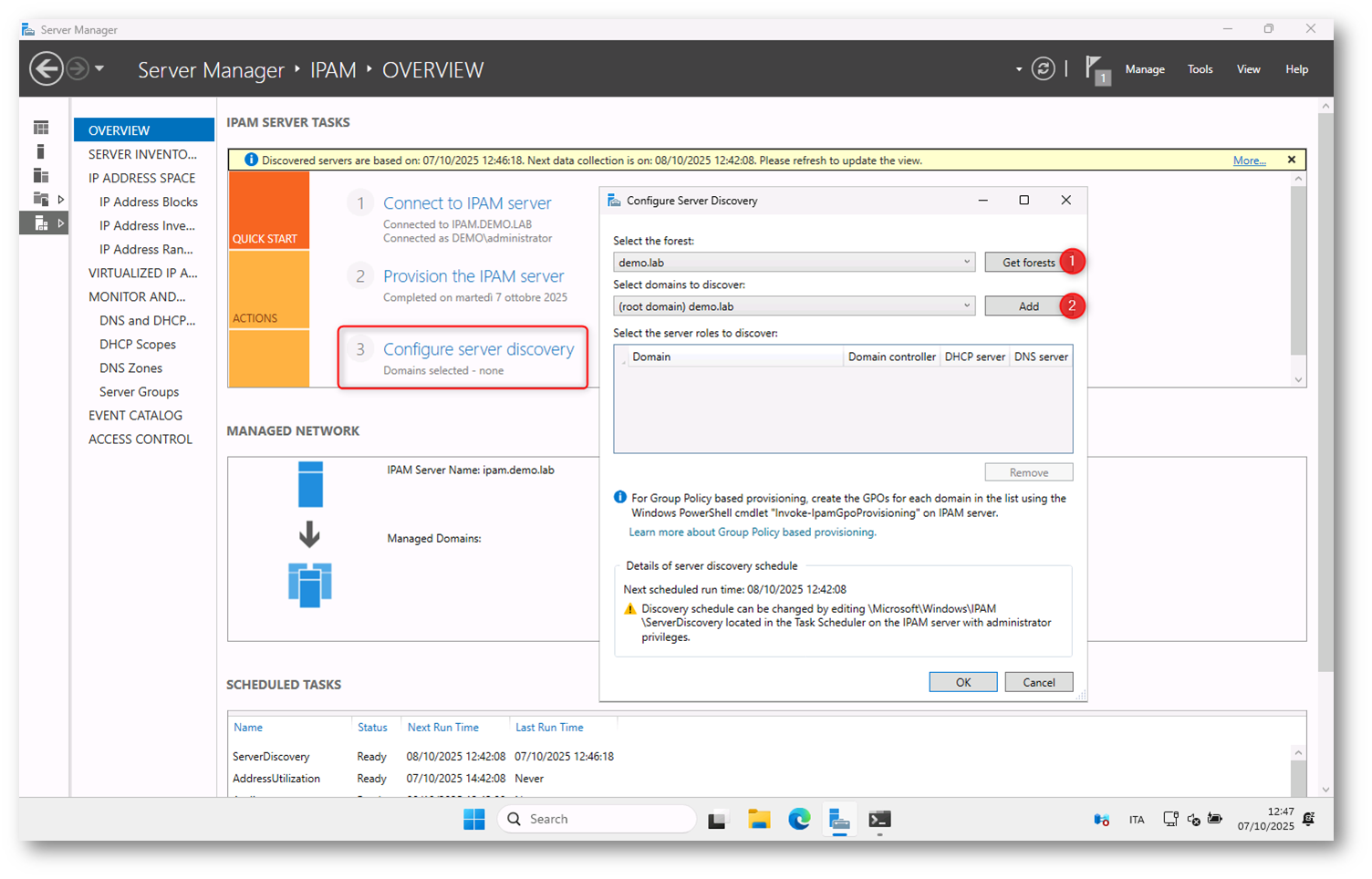 1. Connect to IPAM server – Connessione al server IPAM (in questo caso IPAM.demo.lab).