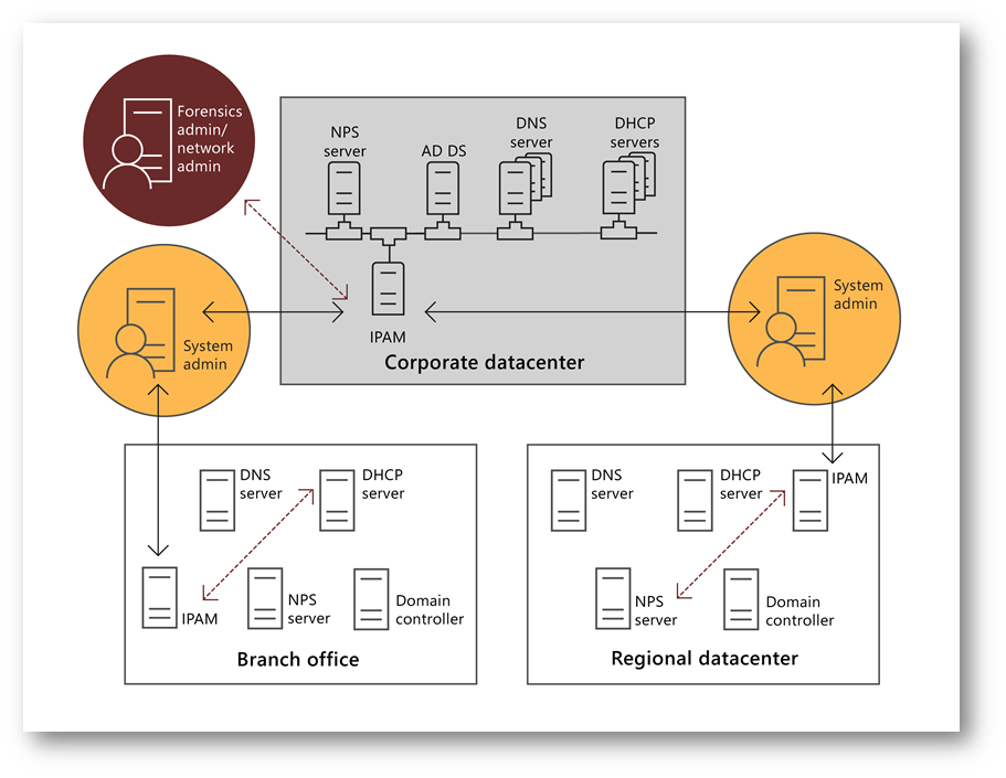 • Nella topologia distribuita, si installa un server IPAM per ciascuna sede o segmento di rete, riducendo il carico e isolando la gestione locale.