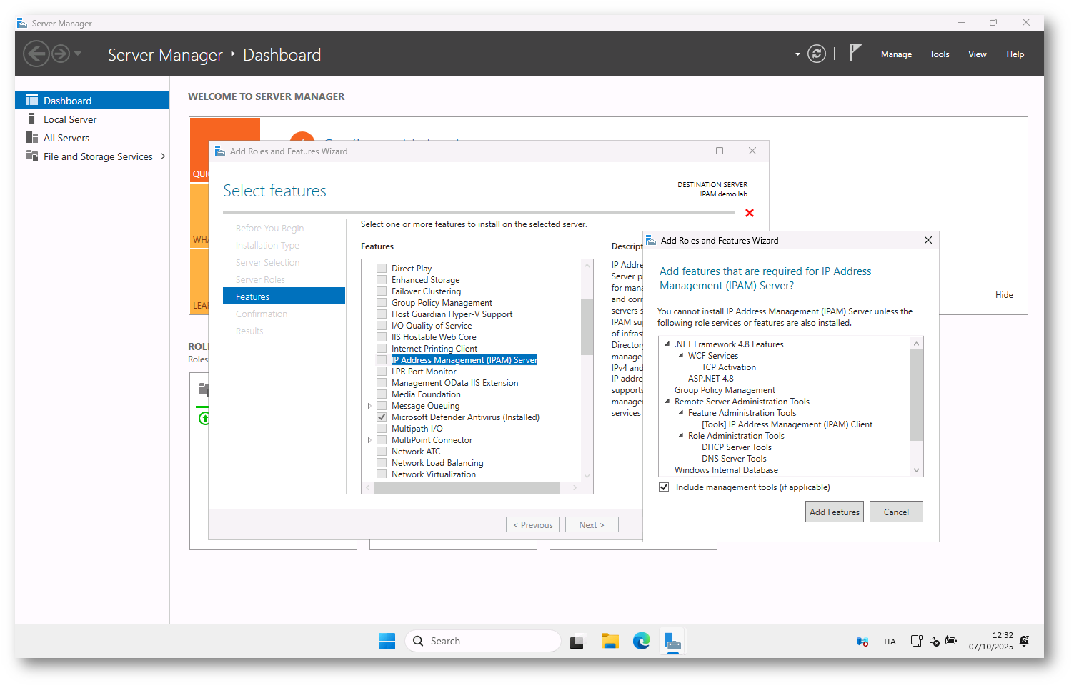 Figura 3: Selezione della funzionalità IP Address Management (IPAM) Server