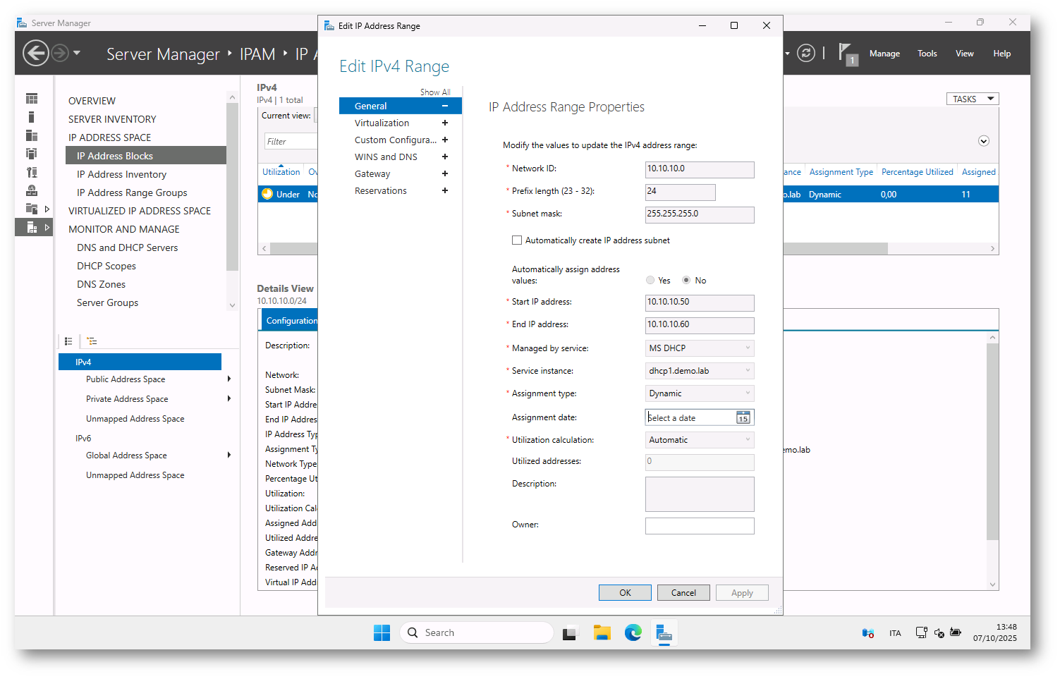 Come si può vedere dalla figura sotto, è possibile modificare le proprietà di un range di indirizzi IPv4 gestito da IPAM.